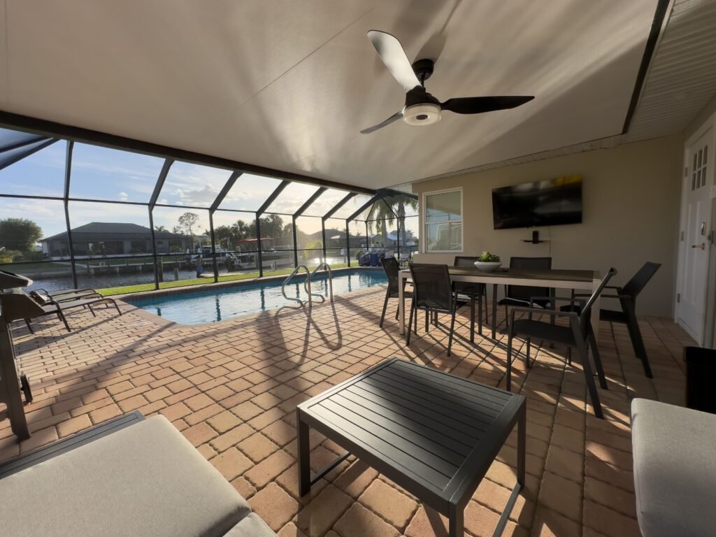 A stunning 4-bedroom estate on a wide canal with sweeping water views, a resort-style heated pool, and a boat ready for adventure. This home offers 12 guests the ultimate Southwest Florida experience.