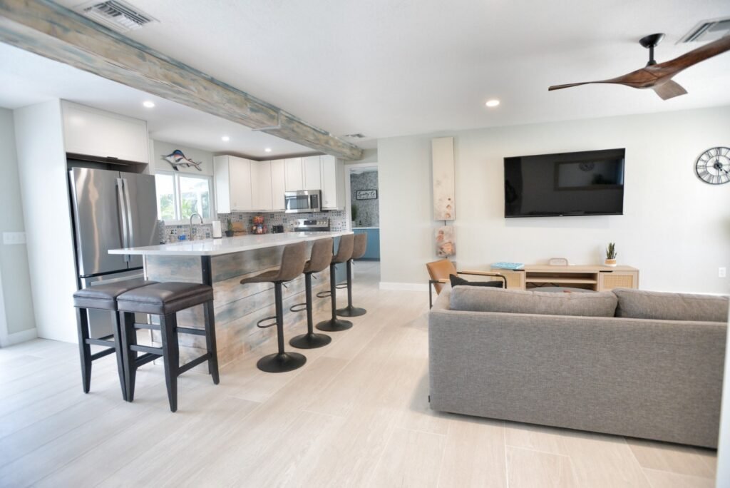 A comfortable 3-bedroom bungalow perfectly situated on a sailboat-accessible canal. With a heated pool and boat included, this home is ideal for smaller families or groups of up to 8 guests.